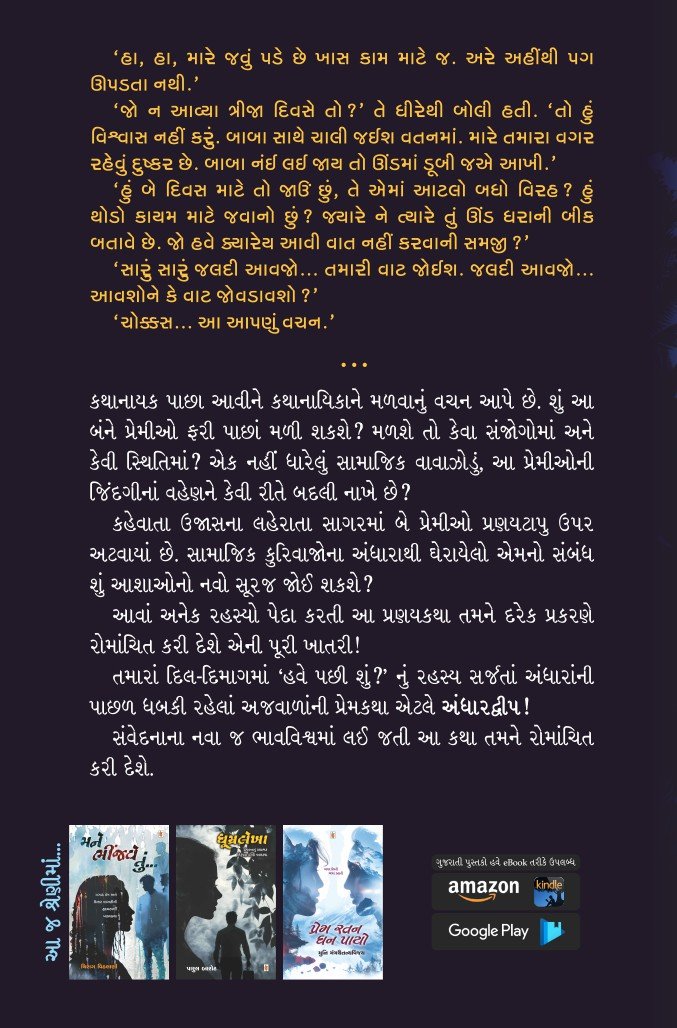 તમારાં દિલ-દિમાગમાં `હવે પછી શું?’ નું રહસ્ય સર્જતાં અંધારાંની પાછળ ધબકી રહેલાં અજવાળાંની પ્રેમકથા એટલે અંધારદ્વીપ!
