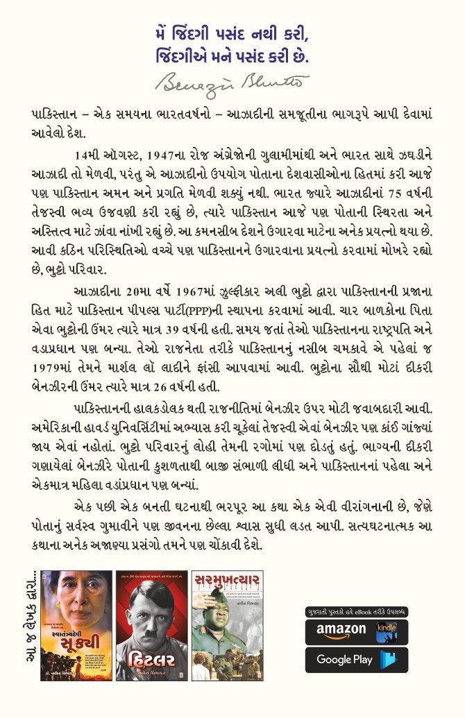 14મી ઑગસ્ટ, 1947ના રોજ અંગ્રેજોની ગુલામીમાંથી અને ભારત સાથે ઝઘડીને આઝાદી તો મેળવી, પરંતુ એ આઝાદીનો ઉપયોગ પોતાના દેશવાસીઓના હિતમાં કરી આજે પણ પાકિસ્તાન અમન અને પ્રગતિ મેળવી શક્યું નથી. ભારત જ્યારે આઝાદીનાં 75 વર્ષની તેજસ્વી ભવ્ય ઉજવણી કરી રહ્યું છે, ત્યારે પાકિસ્તાન આજે પણ પોતાની સ્થિરતા અને અસ્તિત્વ માટે ઝાંવા નાંખી રહ્યું છે. આ કમનસીબ દેશને ઉગારવા માટેના અનેક પ્રયત્નો થયા છે. આવી કઠિન પરિસ્થિતિઓ વચ્ચે પણ પાકિસ્તાનને ઉગારવાના પ્રયત્નો કરવામાં મોખરે રહ્યો છે, ભુટ્ટો પરિવાર.