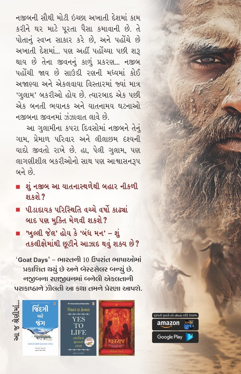 ‘Goat Days’ – ભારતની 10 ઉપરાંત ભાષાઓમાં પ્રકાશિત થયું છે અને બેસ્ટસેલર બન્યું છે. નજીબના રણજીવનમાં બનેલી એકલતાની પરાકાષ્ઠાને ઝીલતી આ કથા તમને હચમચાવી દેશે.