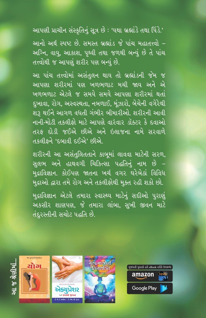 શરીરની આ અસંતુલિતતાને કાબૂમાં લાવવા માટેની સરળ, સુલભ અને હાથવગી ચિકિત્સા પદ્ધતિનું નામ છે – મુદ્રાવિજ્ઞાન. કોઈપણ જાતના ખર્ચ વગર ઘરેબેઠાં વિવિધ મુદ્રાઓ દ્વારા તમે રોગ અને તકલીફોથી મુક્ત રહી શકો છો.