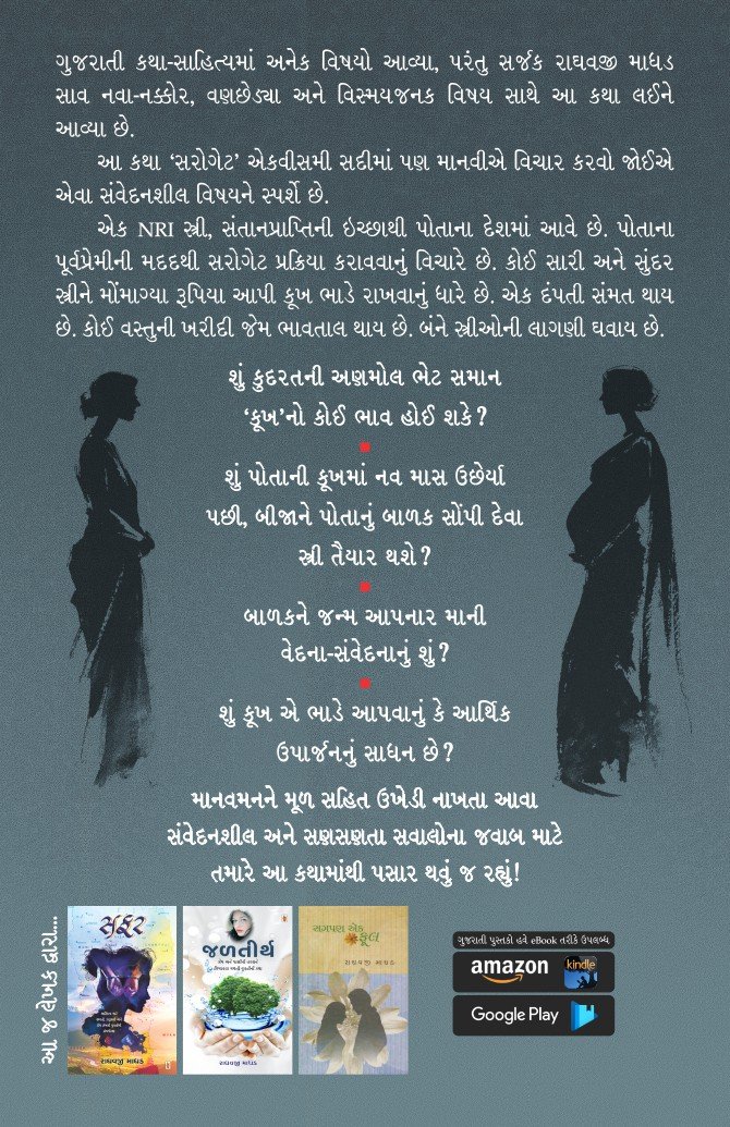 ગુજરાતી કથા-સાહિત્યમાં અનેક વિષયો આવ્યા, પરંતુ સર્જક રાઘવજી માધડ સાવ નવા-નક્કોર, વણછેડ્યા અને વિસ્મયજનક વિષય સાથે આ કથા લઈને આવ્યા છે.